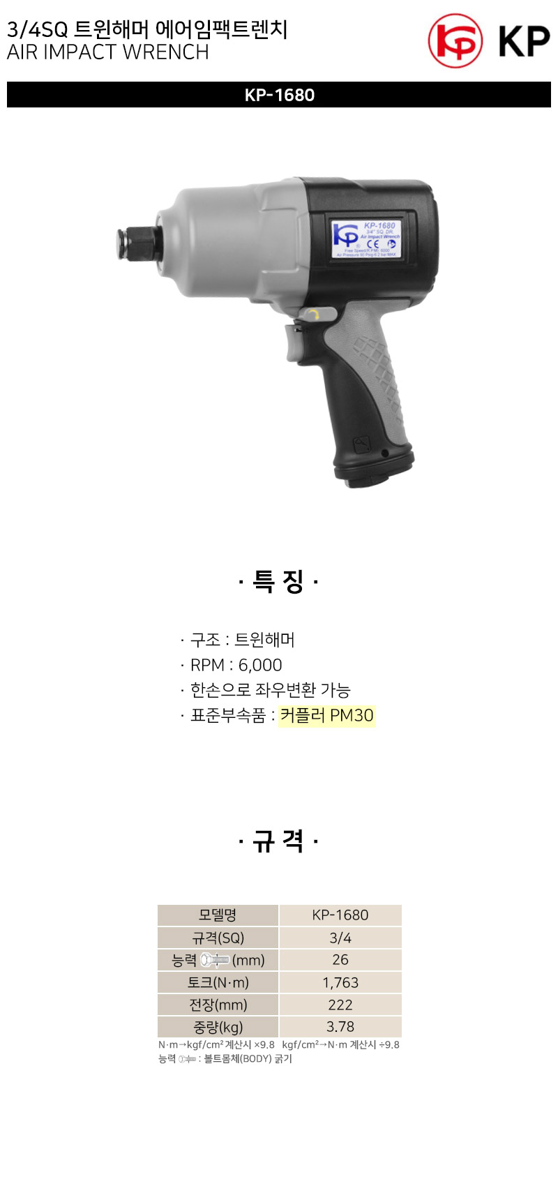 [KP] 에어임팩렌치 3/4SQ 트윈해머KP-1167