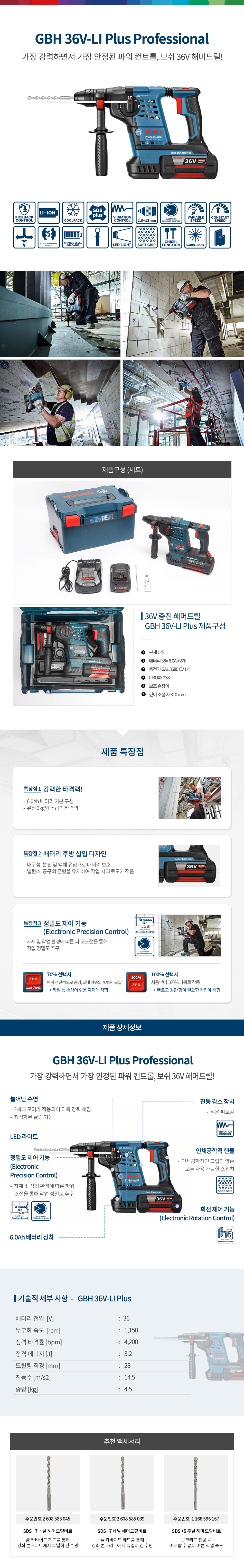 [보쉬] 충전해머드릴GBH36V-LI Plus