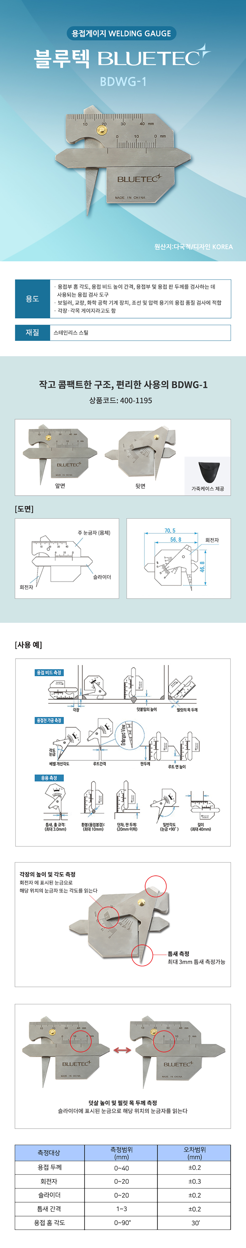 [블루텍철직자] 용접게이지BDWG-1