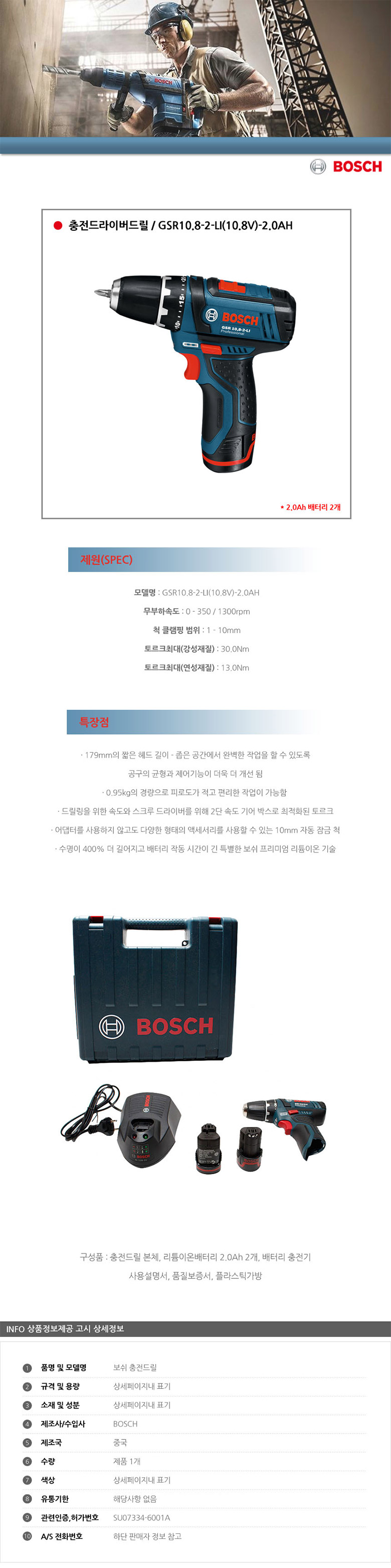[보쉬] 충전드라이버드릴GSR10.8-2LI